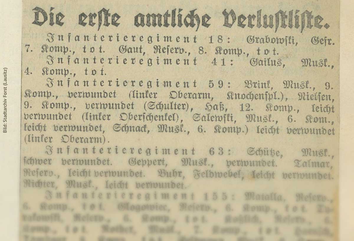 Obwohl es keine direkten Kriegshandlungen in der Lausitz während 1914 bis 1918 gab, hatte der Krieg dennoch starken Einfluss auf das Leben der Menschen. Besonders ab 1916 war das größte Problem für die Lausitzer, etwas zu Essen zu bekommen.